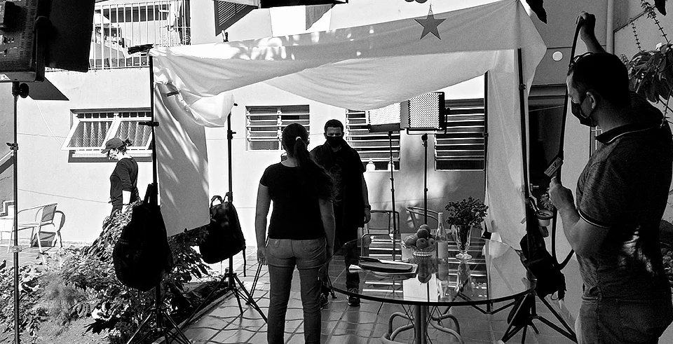 A pandemia representou um desafio a mais. Toda a comunicação foi remota e, em alguns casos, não conseguimos fazer a visita técnica à locação antes da gravação, o que nos trouxe algumas surpresas que tivemos que contornar no set. Os cuidados com a limpeza e o distanciamento também deixaram o andamento do set mais lento, e fomos aprendendo como administrar esses percalços conforme fomos gravando a série.